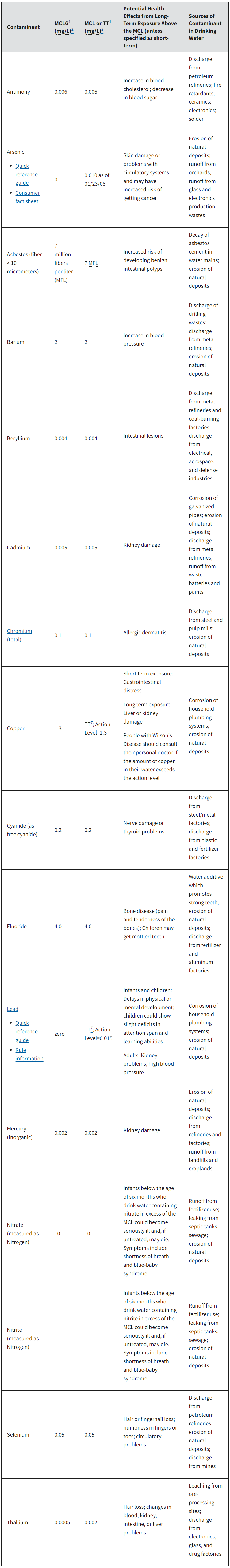 Printable version: Complete NPDWR Table